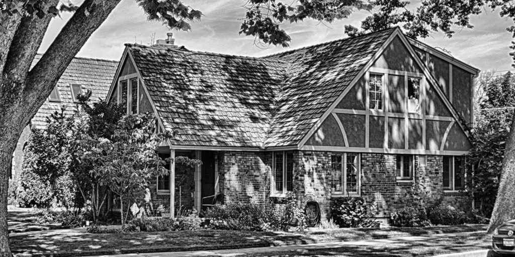 On October, 16, 1928 J.R. Black secured a building permit to construct a $6,000 house. Black contracted with Boise builder J.O. Jordan and Son to both design and build the house. Completed in 1929, the one-and-a-half story brick and half-timber residence displays Tudor Revival elements in its steep intersecting gables, tall chimney stack, decorative brickwork, and narrow multi-light windows. The style was relatively uncommon before World War I, but exploded in popularity during the 1920s and 30s. New masonry techniques allowed builders to mimic the exteriors of medieval models using stone, clinker brick, wood and stucco. Jordan and Son used pattern-book plans as the basis for many of the houses they designed by transforming the basic plans into a collection of Tudor Revival and Colonial Revival houses throughout the North End.