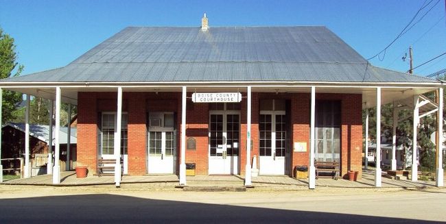The Boise County Courthouse was built in 1871 and was completed in 3 months. Since it was built of brick instead of wood, it was more intolerant to fire damage. Clay bricks and mortar makes this building one of the most structurally sound in all of Idaho City. Originally, the floorboards were laid wide enough in the building to allow room for the common tobacco chewer to spit into. There are great iron folding doors in the front, each weighing a half a ton, and were made in San Francisco. When first built, it was used as a general store, then a hardware shop, then was used as the Orchard Hotel. Finally in 1909 the county bought the building to serve for legal purposes. It is still used today and several sessions run throughout the week. The architecture is seen through the long gables and roof lines, the tall heavy doorways, and the wrap around porches with tall beams all representing what the 1800s stood for.