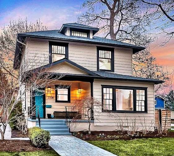 Built in 1911 for Leander W. Smith, who in 1904 was elected to the Idaho State Senate, the house reflects Boise’s embrace of the Colonial Revival as a symbol of civic aspiration and permanence along Harrison Boulevard.This Colonial Revival residence presents a symmetrical two-story form with a hipped roof, front and side dormers, and a recessed left-side porch