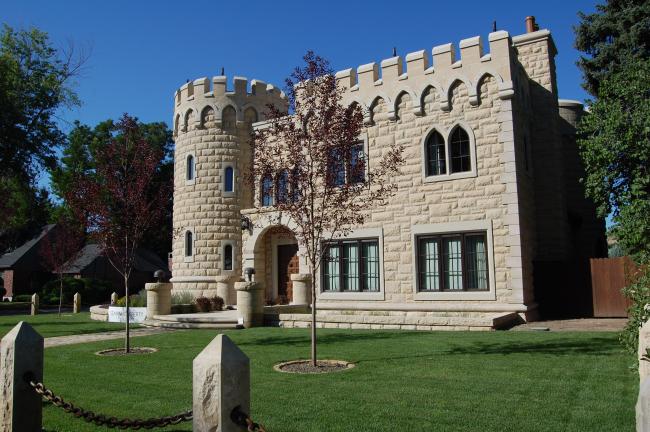 The house (to call it just a house seems absurd), this castle, is architecturally significant to Boise because of its absurdity/uniqueness. Once the castle is finished it will include an outdoor living entertainment area including a grill, bar area, a fire pit and a beautiful water feature. With its turrets and crenellations with the Barber family crest etched into the stone, this castle went all out with its features. Its massive winding staircase located within the massive tower/turret will allow for a circular dining room fit for the Knights of the Round Table. At the top of the house, a lookout will be featured, allowing the viewer to see all the way to the Boise State Stadium. A stone catwalk will also be featured, allowing a guest to pass to different portions of the house while able to go outside to do so. Sadly, there would be no moat with ferocious alligators or other deadly animals; only landscaping that would make it appear that there was one. The castle, complete with a drawbridge and a stone catwalk, brings back some Neo-Medieval/Gothic Architecture style that has not been seen on Warm Springs ever before. It is also significant to Boise history because it’s a first, and controversy is always something that is remembered in history. It looks as if it should be on Warm Springs, right outside of the historic district, rather it should be put on top of a mountain in a different country with fog rolling around it.